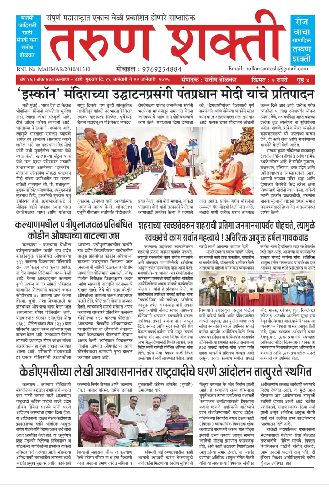 पर्यावरणाचा बचाव करण्यासाठी नागरिकांनी सहकार्य करावेमहापालिका आयुक्त अभिनव गोयलकल्याण! पर्यावरणाचा बचाव करण्यासाठी, प्रदूषण कमी करण्यासाठी, जलसंवर्धनासाठी तसेच कचरा वर्गीकरणासाठी...