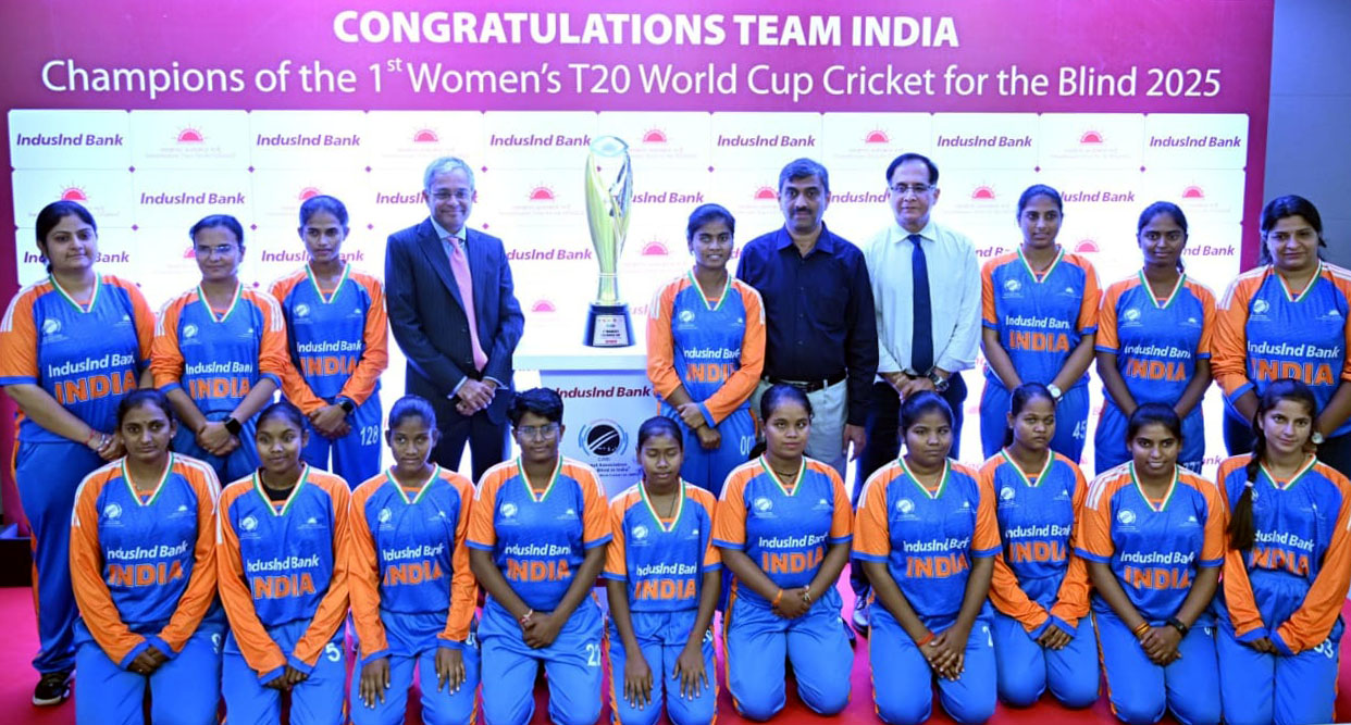 पनवेल (प्रतिनिधी) इंडसइंड बँकेने महिला अंध टी-२० क्रिकेट वर्ल्ड कपच्या पहिल्या आवृत्तीत ऐतिहासिक विजय मिळवलेल्या भारतीय महिला अंध क्रिकेट संघाचा सन्मान करण्यासाठी विशेष सत्कार...