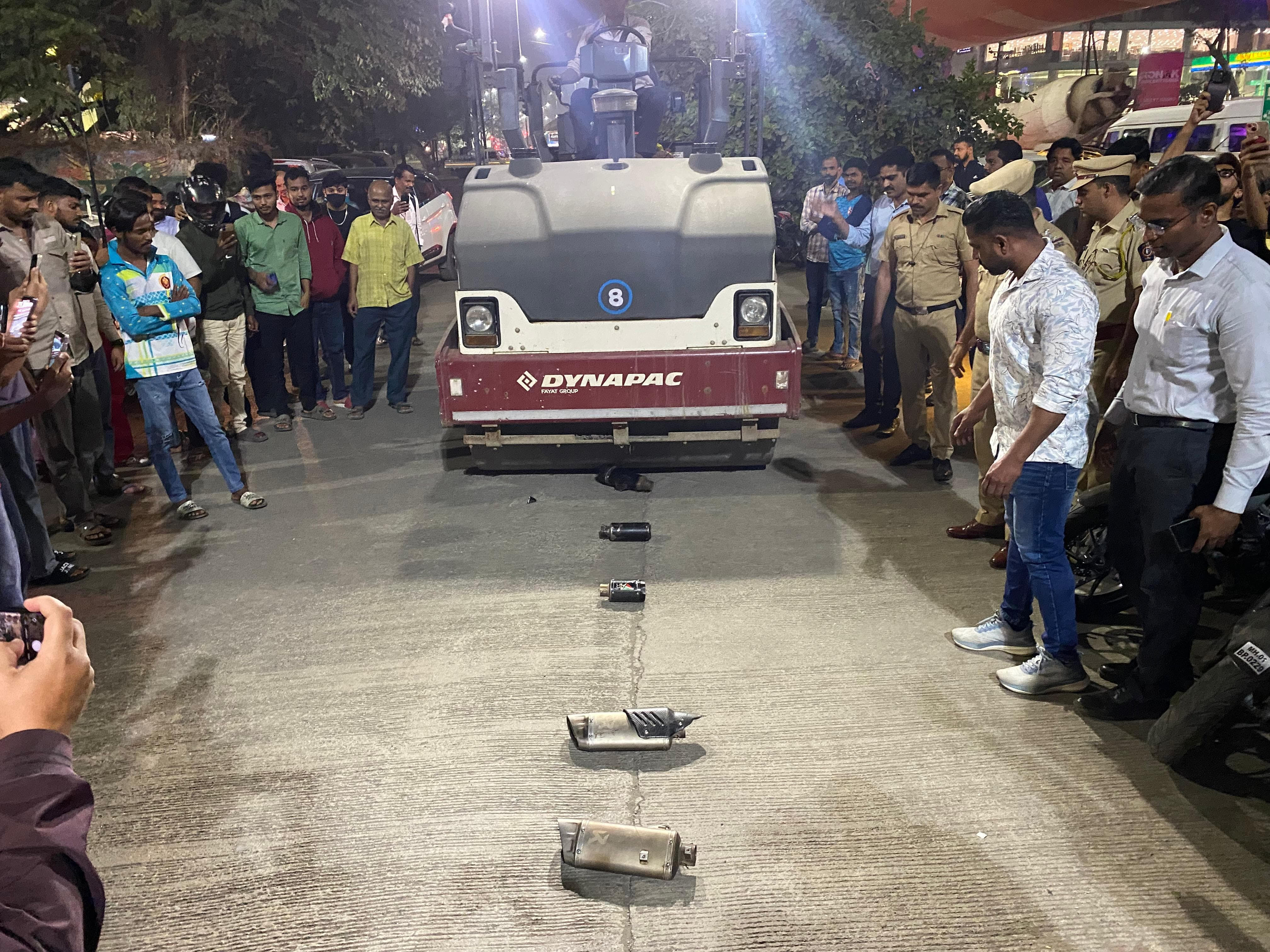 जप्त केलेल्या सायलेन्सरवर फिरवला रोडरोलरपनवेल (वार्ताहर) - कर्णकर्कश आवाजात दुचाकी पळवून नागरिकांना त्रास देणाऱ्या दुचाकीस्वाराना पनवेल शहर पोलिसांनी चांगला धडा शिकवला. यावेळी दहा...