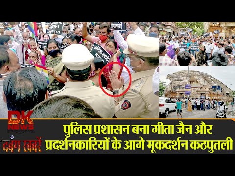 पुलिस प्रशासन बना गीता जैन और प्रदर्शनकारियों के आगे मूकदर्शन कठपुतलीगीता जैन और सैकड़ो प्रदर्शनकारियों ने उड़ाई कानून की धज्जियागीता जैन प्रदर्शनकारियों रोकने वजाय पुलिस ने टेके...