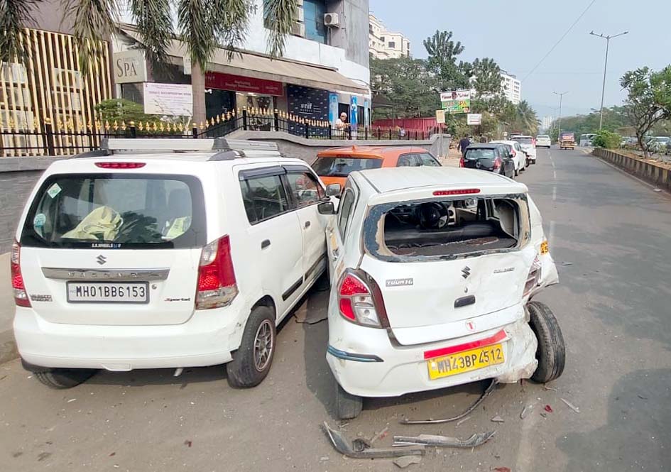 वाशीत वकीलाच्या भरधाव कारची वाहनांना धडक
